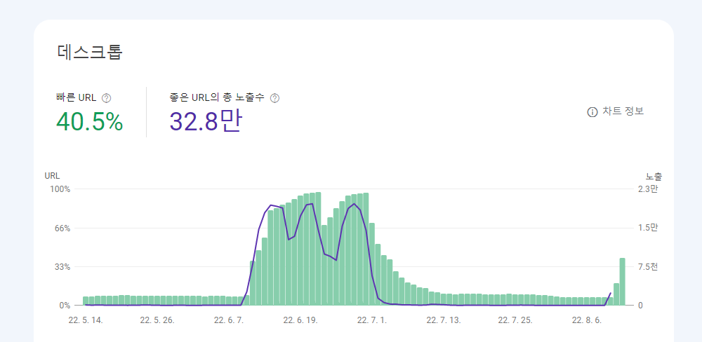 수도권에서 멀어질수록, 통신 환경이 불안정할수록 이탈률은 커질 수밖에 없겠죠. 이러한 경험과 데이터는 누적되어 사이트의 평판이 나빠지게 되고 사이트의 품질이 하락할 수 있다는 걸 의미합니다. 그렇게 되면 구글 검색 포털에서 서서히 노출되는 콘텐츠의 수가 적어지고 순위가 밀려나는 현상이 발생할 수 있습니다.