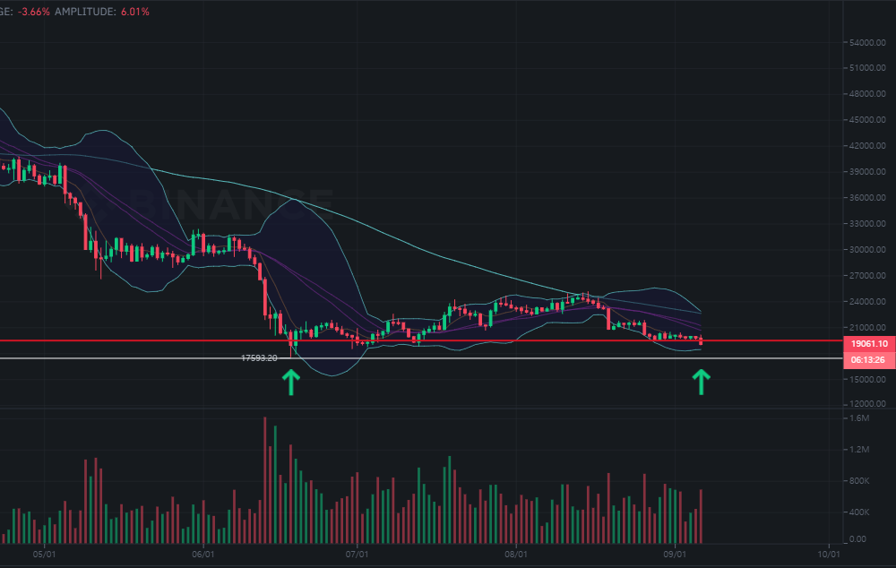 이제 비트코인 롱 세력은 19K와 18K 그리고 17.6K에서 세 번의 강한 지지라인을 구축하려고 할 것입니다. 그 지점이 좋은 매수 지점이자 스탑로스를 걸기에 좋은 지점이 되기도 합니다.