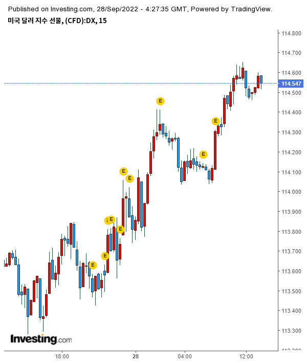 미국 달러 인덱스는 미국 달러가 다른 통화에 비해 "강세"(가치)를 얻을 때 상승합니다.