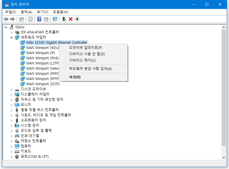이렇게 장치 관리자를 통해서 쉽게 드라이버를 재설정할 수 있습니다. 공유기 문제의 경우라면 간단하게 공유기 뒷편에 보시면 초기화 버튼이 있으실 겁니다. 이렇게 간단한 해결방법을 알아보았습니다. 이 외에도 인터넷이 되지 않는 이유는 여러가지가 있습니다. 그래서 해결하기 위해서는 하나하나 해보는 방법밖에 없습니다. 랜선 불량인 경우에는 다른 것들을 정상적으로 설정하여도 인터넷 속도가 안나오는 경우가 있습니다. 따라서 알맞는 랜선을 선택하는 것도 매우 중요합니다.