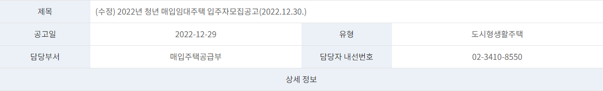 - 문의전화 : 1600-3456(서울주택도시공사 콜센터)