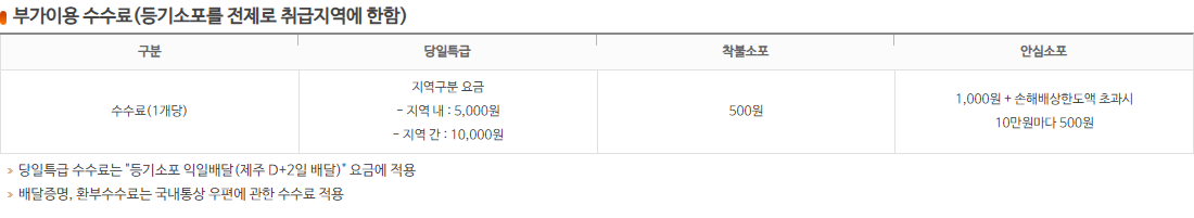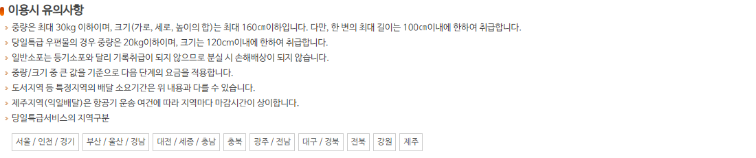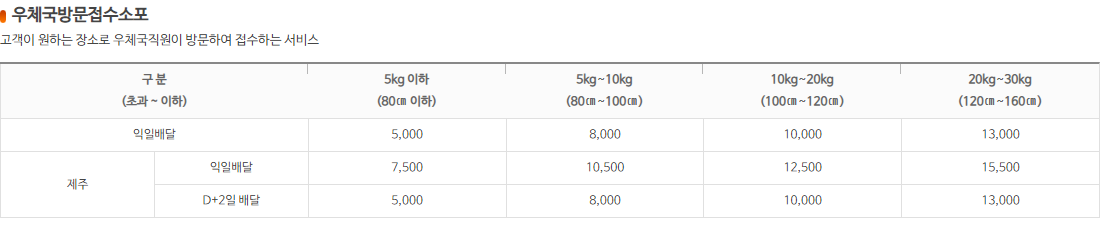 - 5kg 이하(80㎝ 이하) : 익일배달 5,000 , 제주 익일배달 7,500 , 제주 D+2일 배달 5,000