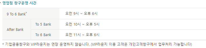 기업 금융 창구 및 VIP 라운지는 연장되지 않습니다.