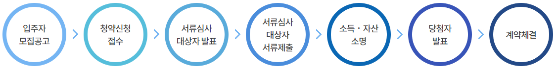 - 신청기간 : 접수기관과 사업별로 차이가 있어 개별 단지 입주자 모집 공고를 확인해야 한다.