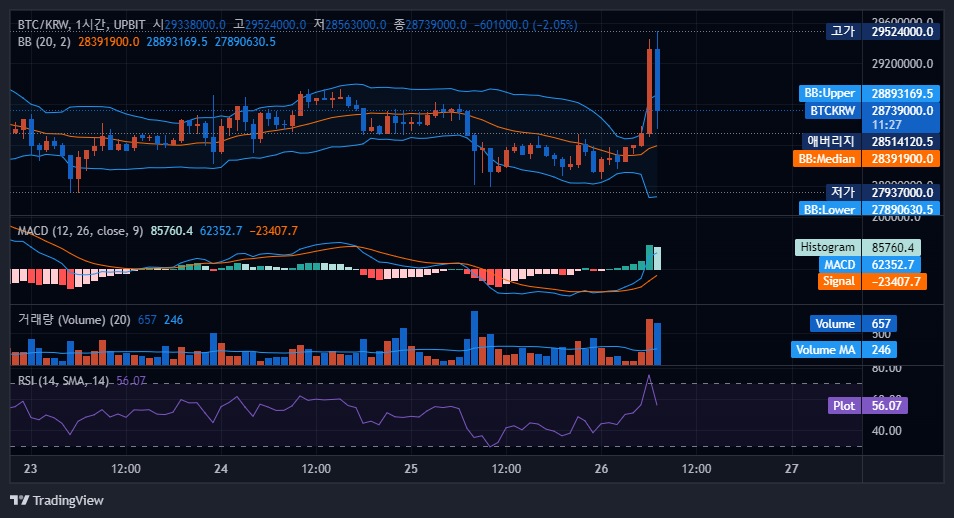 매물대를 소화하면서 무리하게 돌파한 만큼 어느 정도 단기간 조정이 올 가능성은 있습니다. 다만 추세로 보면 장기적으로는 상승 추세로 전환되었다고 해도 무방할 것 같습니다. 조금 더 차트를 보고 판단해야겠지만 분명 현물투자자들에게는 많은 기회가 올 것이라 생각됩니다. 좋은 매매 하시길 바랍니다.