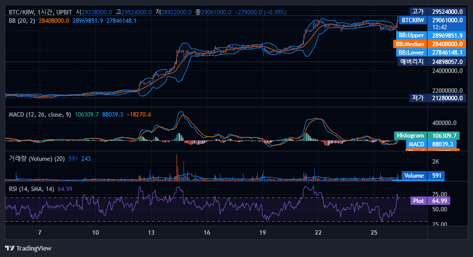 안녕하세요. 오랜만입니다. 최근에는 너무 바빠져서 트레이딩 관련해서 글을 하나도 못썼네요. 확실히 이전 매집 구간 이후 비트코인의 가격이 상당히 많이 올랐습니다. 롱포지션을 꾸준히 잡고 있으셨던 분들에게는 좋은 기회가 되었을 거라 생각합니다. 차트가 조금 낯설죠. 네, 그렇습니다. 바이낸스가 아니라 업비트입니다.