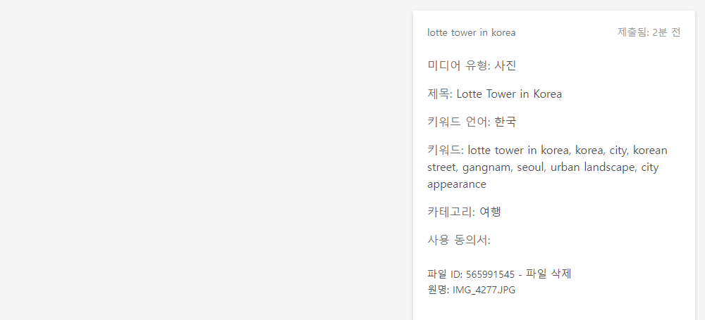 셔터스톡과 마찬가지로 이렇게 사진을 업로드하고 허용되면 판매가 진행됩니다. 어도비 스톡은 외국 사람들이 많이 이용하는 사이트다 보니까 영어 키워드로 등록하는 것이 검색에 유리할 것입니다.