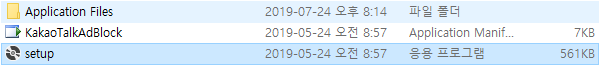 정확한 프로그램 파일명은 KakaoTalkAdBlock 입니다.