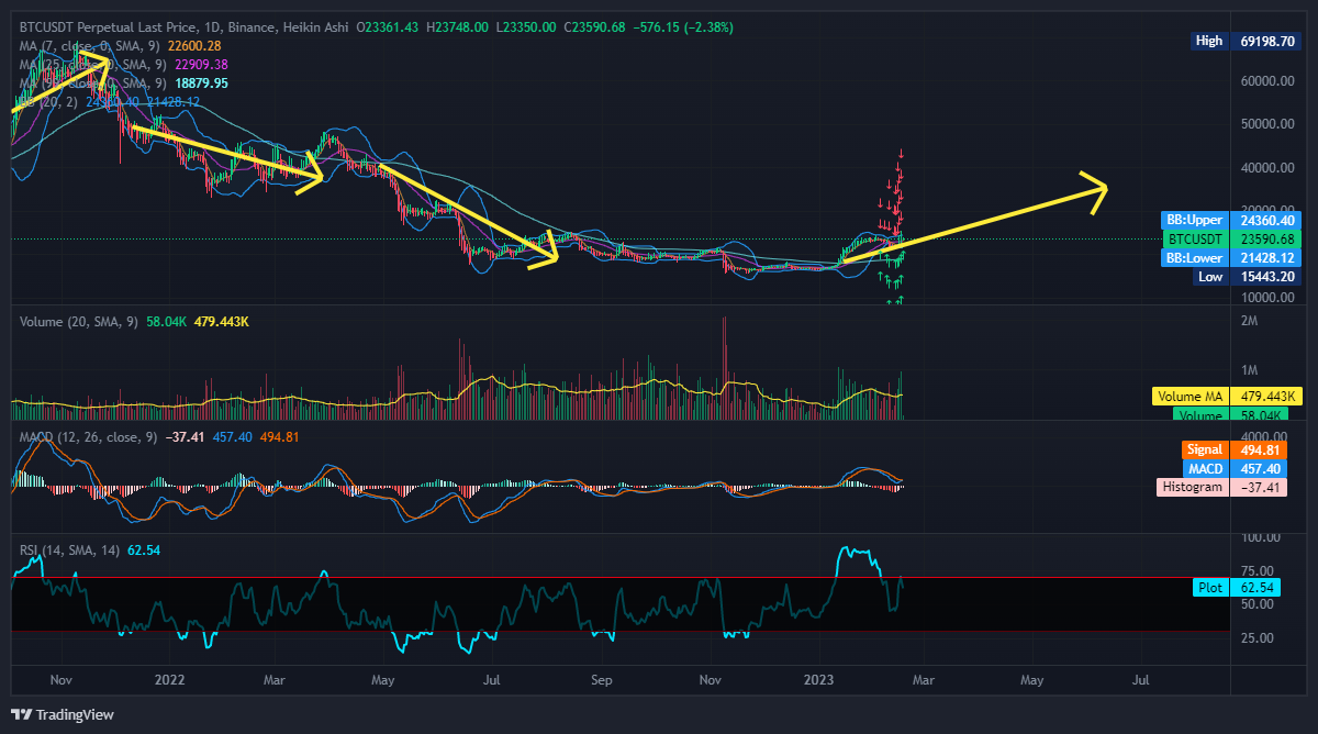 가격이 상승하고 있고 이동평균선에서 계속 지지를 받아 가격이 상승하고 있으니 저는 롱게임을 계속 할 것입니다. 물론 숏포지션을 잡는 경우도 있는데, 그러한 경우는 RSI 지수가 과하게 매도 포인트를 알리거나 압도적인 거래량으로 롱세력을 누를 때 숏포지션을 잡을 것입니다. 그러한 신호가 오기 전까지는 롱게임을 하는 것이 훨씬 유리합니다.