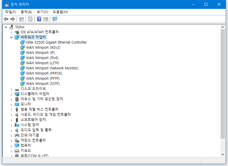 네트워크 초기화를 시켰음에도 불구하고 인터넷이 되지 않는다면 드라이버를 제거 한 후 다시 설치해봅니다.