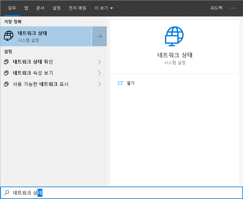 우측 하단에 위치하고 있는 인터넷 아이콘을 클릭하셔서 문제해결을 클릭해보시거나, 윈도우 키를 누른 다음에 네트워크 상태라고 검색창에 검색하고 나오는 네트워크 관리자 창으로 이동합니다.