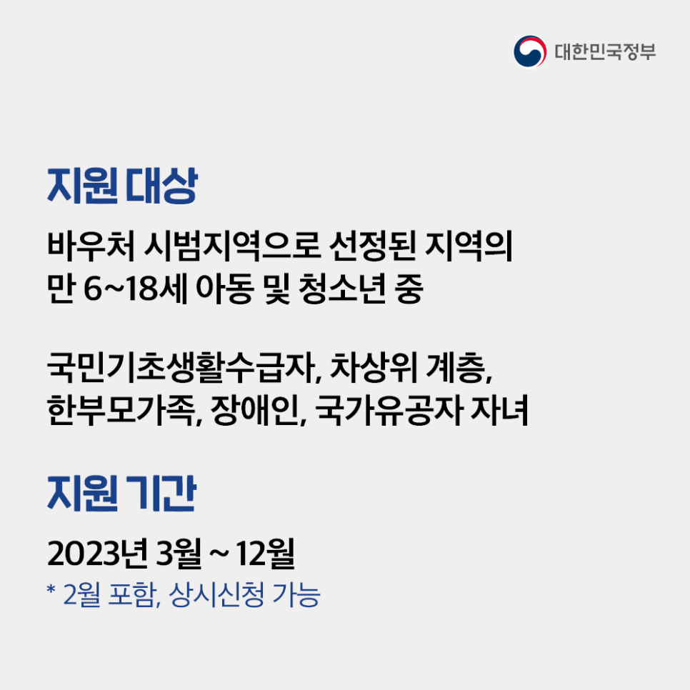 우유바우처는 기존 학교에서 일괄적으로 공급되던 우유급식과는 달리 학생들이 직접 우유를 선택하여 구매할 수 있는 형태입니다. 지원금액은 카드로 지급되며, 지원 기간은 2023년 3월부터 12월까지이며 2월을 포함해 상시 신청이 가능합니다.