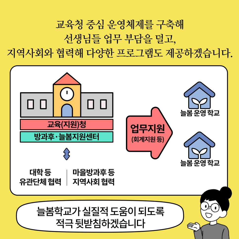 '늘봄학교'는 교육청 중심의 운영체계로 선생님들의 부담도 줄이고, 학생들에게 더 나은 교육과 돌봄을 제공할 수 있다.