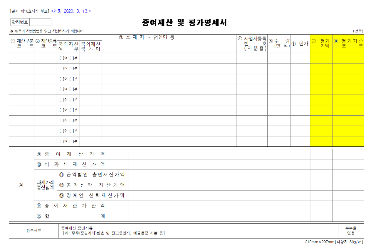 이처럼, 증여세 신고를 위해서는 증여세과세표준신고 및 자진납부계산서 작성과 함께 증여재산가액을 정확하게 작성해야 합니다.