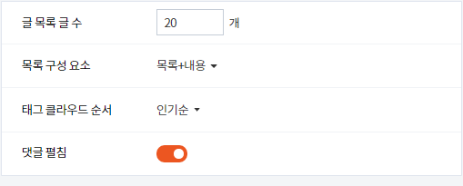 추가적으로 티스토리 내에서 검색했을 때 출력되는 갯수를 별도로 수정하는 방법을 찾아보았었는데, 스킨편집 기본설정에서 글 목록 글 수를 수정하시면 됩니다. 기본 설정에서 아래의 글 목록 글 수를 수정하시길 바랍니다.