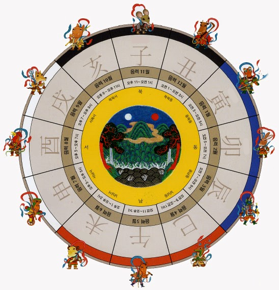 십이지지는 자연의 현상을 바탕으로 만들어진 시간표기법입니다. 그 중심에는 12개의 동물지가 있으며, 이들이 회전하면서 하루를 12개의 시간으로 나누어 놓았습니다.