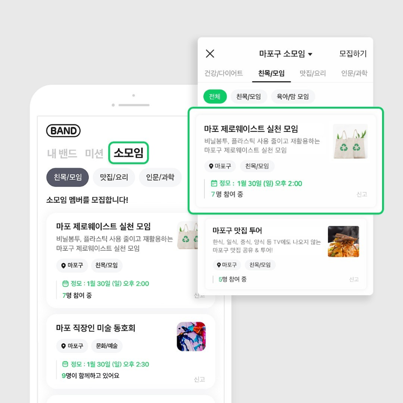 밴드는 그룹 멤버와 함께 하는 공간입니다. 동호회, 스터디, 주제별 모임을 밴드로 시작하세요.