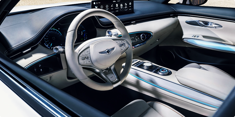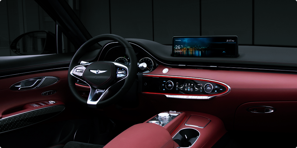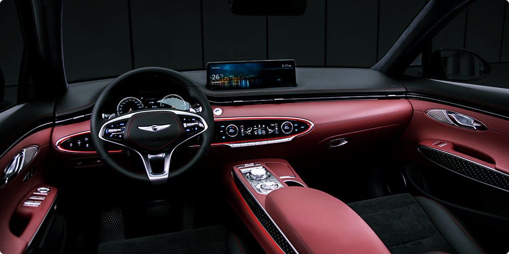 GV70은 내부 공간에서는 투싼 NX4보다는 작은 편이지만, 중형급 SUV로서 충분한 공간을 제공합니다. 내부 디자인은 GV80과 유사하며, 센터콘솔에는 크리스탈 터치패드와 다이얼식 변속 레버가 포함되어 있습니다. 또한 14.5인치 증강현실 내비게이션이 탑재되어 있어 더욱 편리한 운전을 가능하게 합니다.