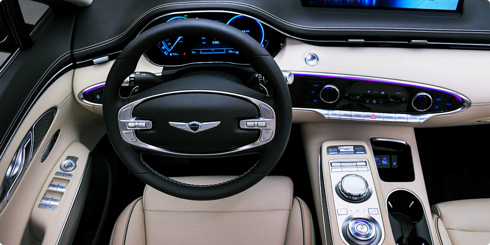 GV70은 내부 공간에서는 투싼 NX4보다는 작은 편이지만, 중형급 SUV로서 충분한 공간을 제공합니다. 내부 디자인은 GV80과 유사하며, 센터콘솔에는 크리스탈 터치패드와 다이얼식 변속 레버가 포함되어 있습니다. 또한 14.5인치 증강현실 내비게이션이 탑재되어 있어 더욱 편리한 운전을 가능하게 합니다.