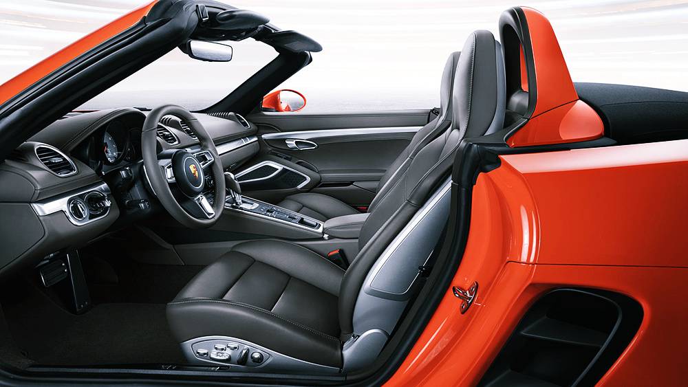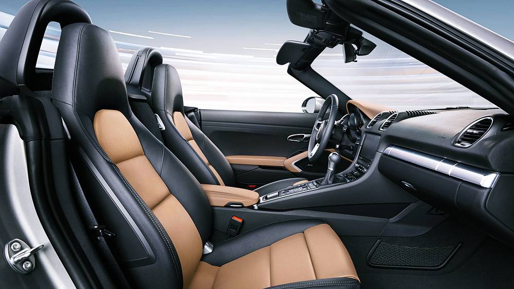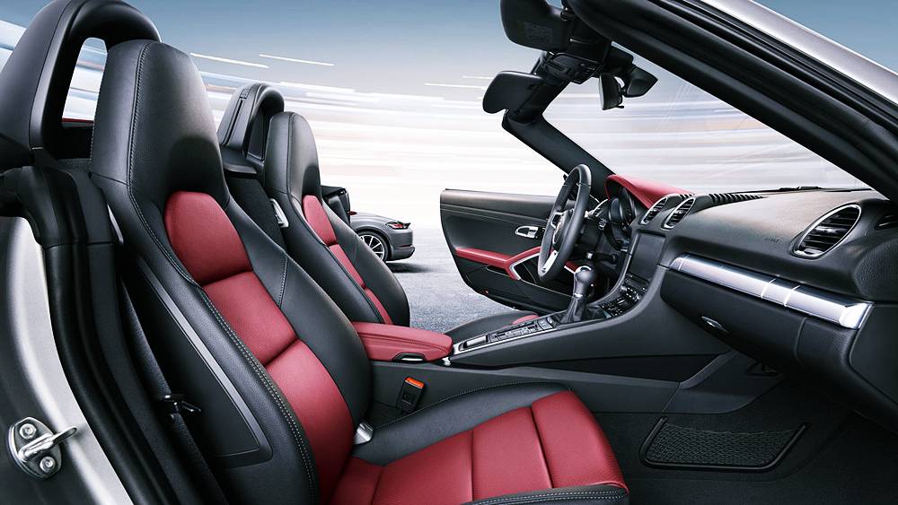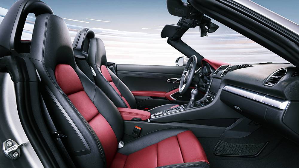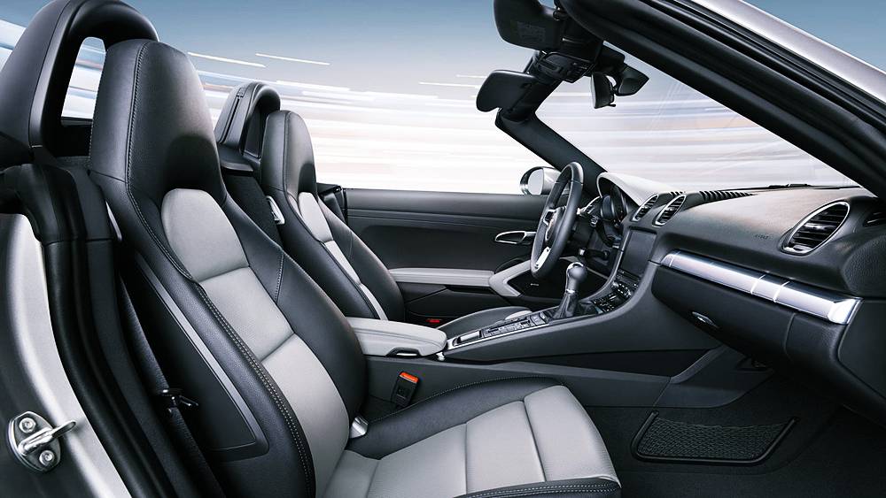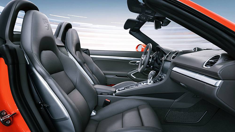 2023 포르쉐 718 박스터 GTS에서는 풀 버켓 시트를 선택할 수 있다. 이는 경량화된 시트로서 카본과 강화플라스틱 소재를 사용하여 중량을 대폭 줄인 것이 장점이다. 시트의 가운데 부분은 레이스텍스로 만들어져서 드라이버의 몸을 잘 잡아주는 역할을 한다. 오염도 적고 부드럽지만 수트와 만나면 붙잡아 주는 힘이 강해서 몸을 잡아주는 역할을 한다.