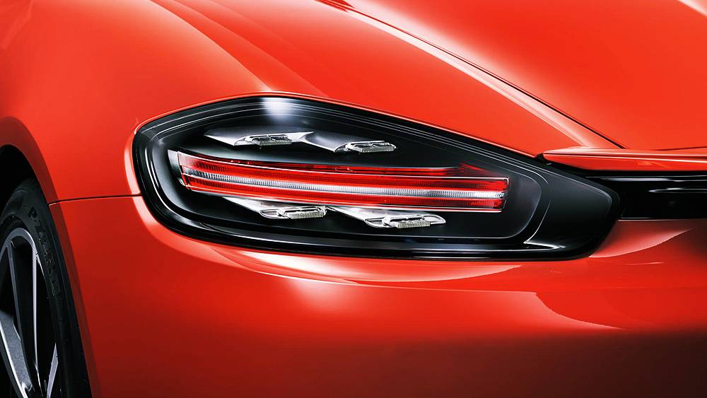 강렬하게 보이는 LED 램프가 적용된 포르쉐 718 박스터 GTS는 훌륭한 시인성을 자랑한다. 퍼포먼스를 즐기는 운전자로서 시야를 확보하는 것은 매우 중요하다. 다행히도 이 차에서는 그런 걱정을 할 필요가 없다.