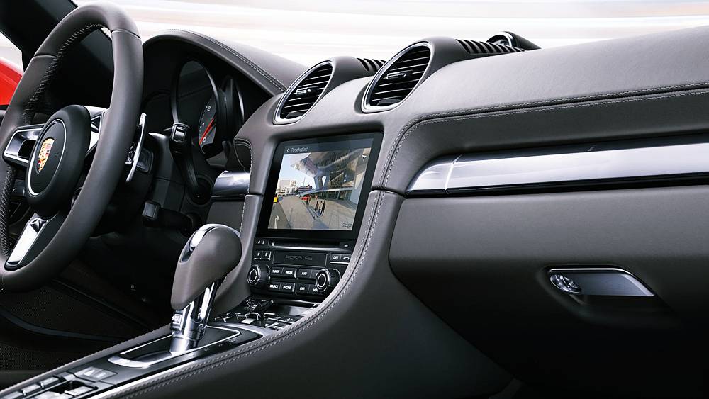 2023 포르쉐 718 박스터 GTS는 구형 인테리어 디자인을 그대로 사용하고 있다. 작은 모니터와 후방만 나오는 카메라 기능이 아쉬움을 남길 때가 있다. 그러나 스마트폰과의 연결을 잊지 않고 장착되어 있으며, 애플 카플레이를 무선으로 연동할 수 있어 시리 보이스 이용이 편리하다. 전화, 음악 스트리밍, 구글맵 등이 지원되며, 앱인 카카오맵이나 티맵의 연동은 확인하지 못했다. 하지만 스마트폰과의 연동이 가능한 애플 카플레이는 충분히 실행될 것으로 예상된다.