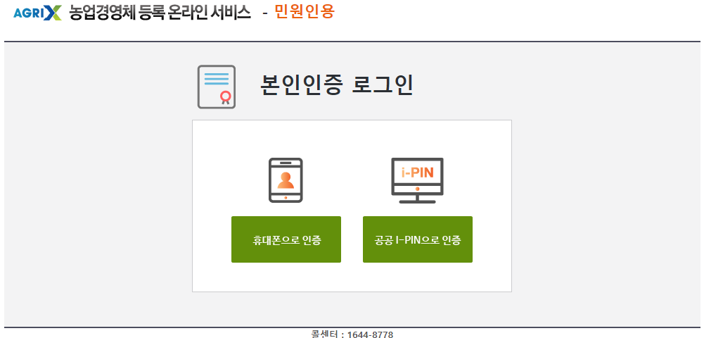 - 농업경영체 등록 확인서 교부 신청 화면 진입