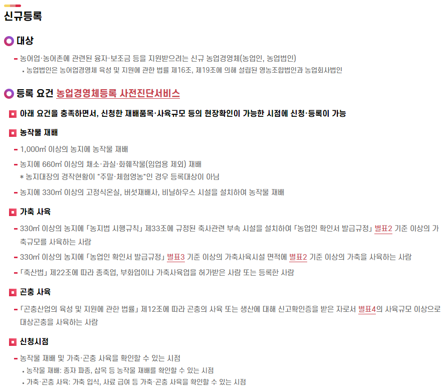 - 농축산물을 직접 생산하지 않는 유통 및 가공법인도 농업경영체에 등록 가능