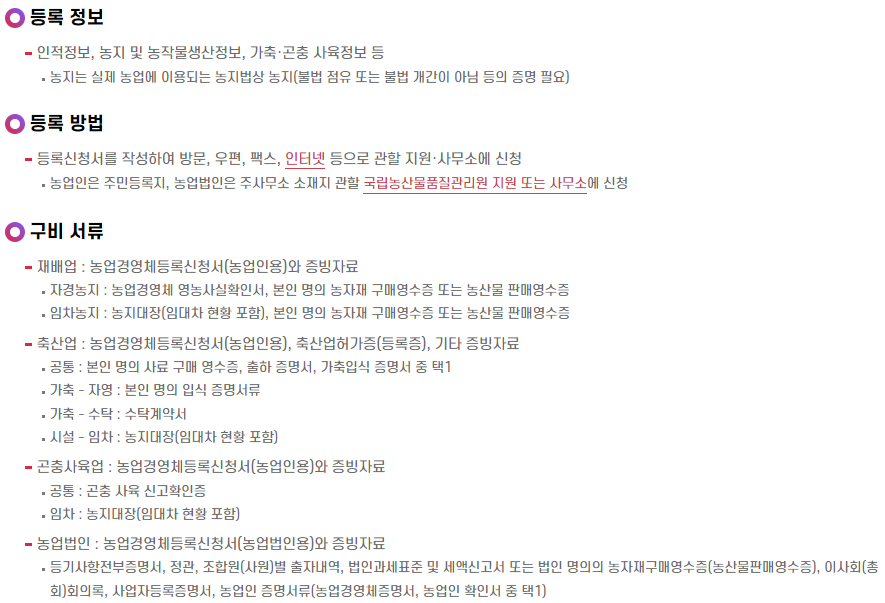 - 농축산물을 직접 생산하지 않는 유통 및 가공법인도 농업경영체에 등록 가능
