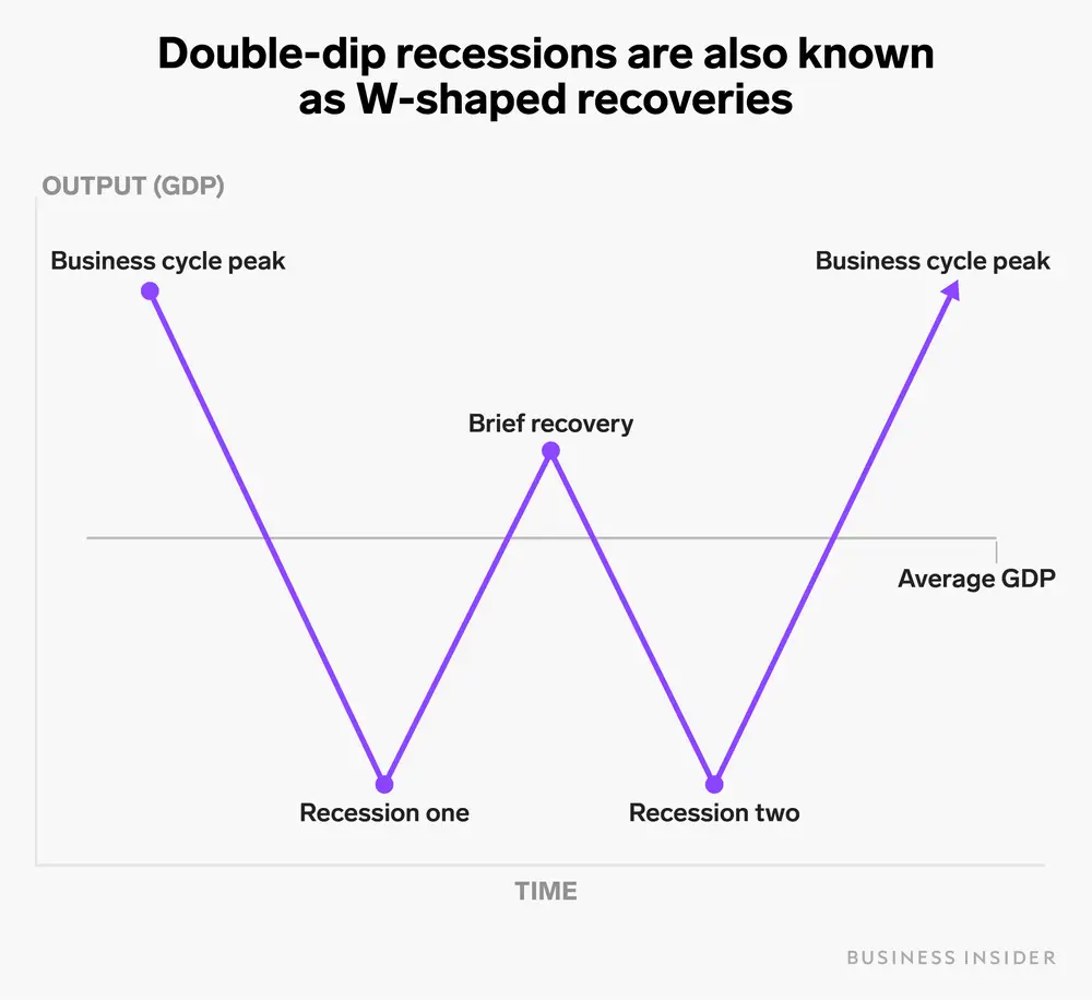더블딥은 경제의 순환 구조에서 나타나는 현상으로, 경제가 한 번의 침체를 겪은 후 잠시 회복하다가 다시 또 다른 침체에 빠지는 상황을 가리킵니다. 이는 단순한 경기침체보다 더 나쁜 결과를 가져올 수 있습니다. 초기의 침체 상황에서는 아직 희망의 빛이 살아있을 수 있습니다. 그러나 두 번째 침체가 발생하면 이전에 겪은 어려움으로 인해 더 큰 타격을 받게 되는 것이 더블딥의 특징입니다.