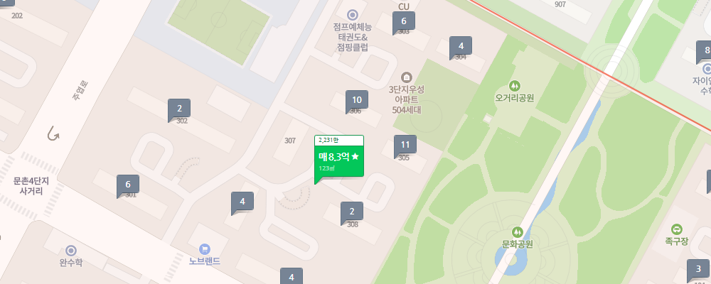 문촌3단지우성 아파트는 안전하고 편리한 도시 생활을 제공하는 아름다운 주거지입니다. 1994년에 사용승인을 받은 이 아파트는 주엽동에 위치하고 있으며, 초등학교, 학원가, 공원 등이 인접해 있어 편리한 생활을 만끽할 수 있습니다. 주위에는 다양한 교육시설과 생활편의시설이 혼재하고 있어 이곳에서의 생활은 더욱 풍요로워집니다.