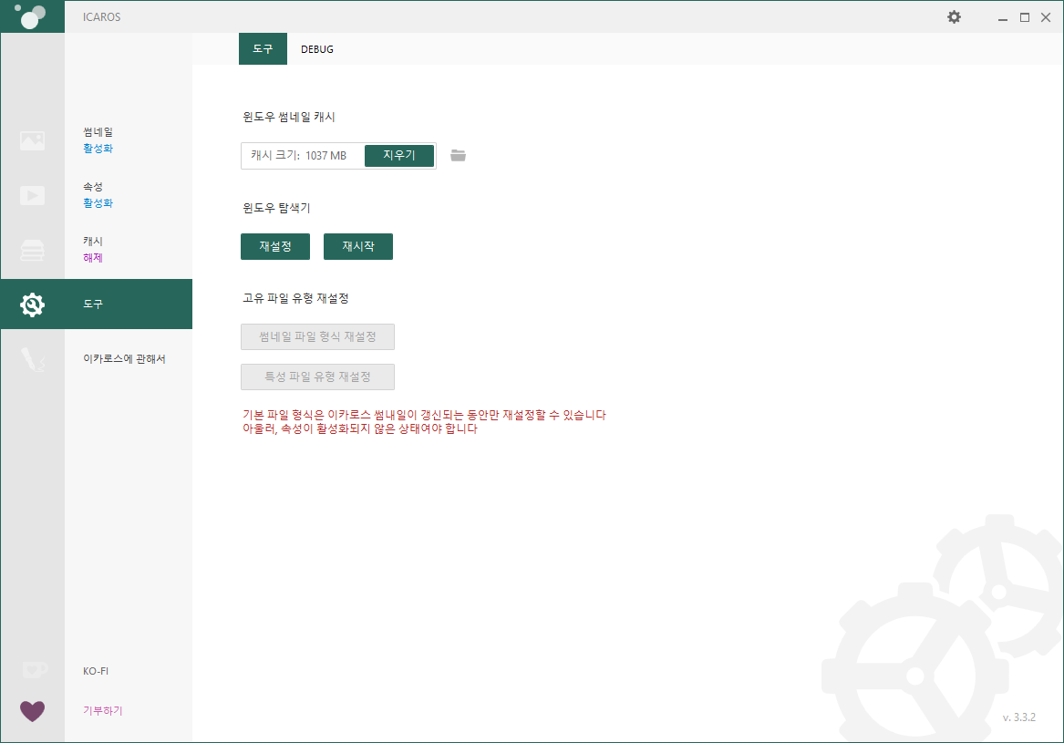 - Icaros 공식 사이트에 접속하여 "Download Icaros 3.3.2"을 클릭하여 프로그램을 다운로드합니다.
