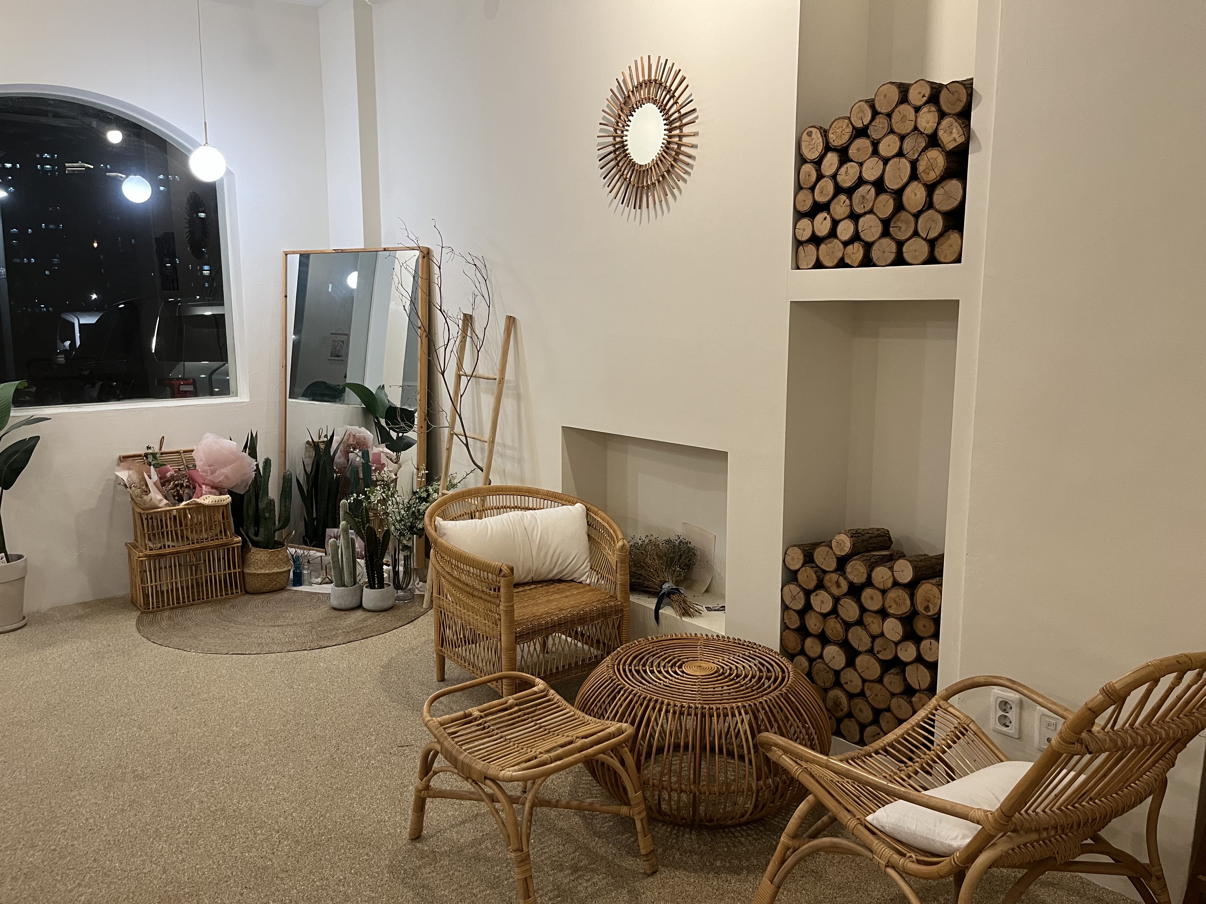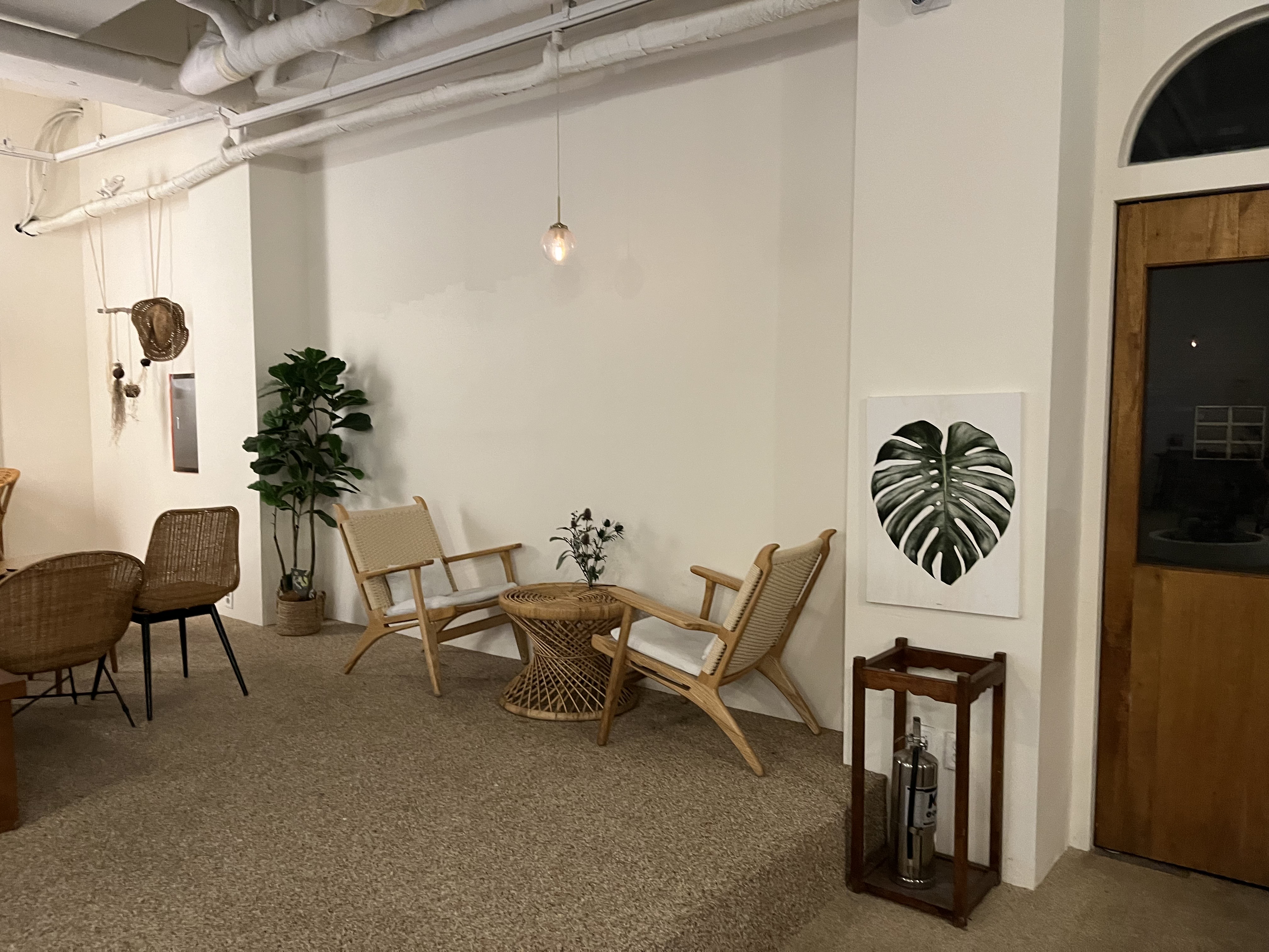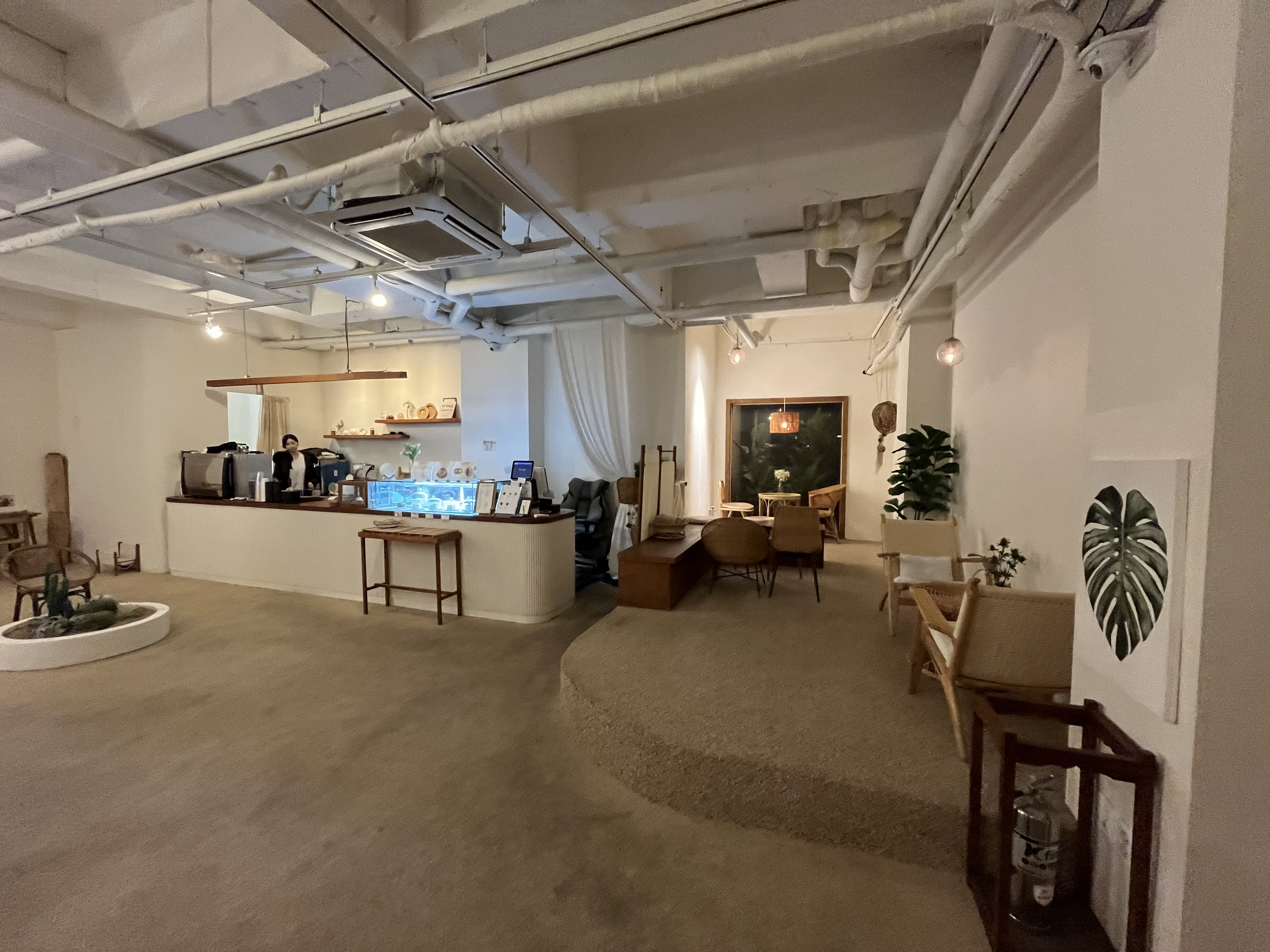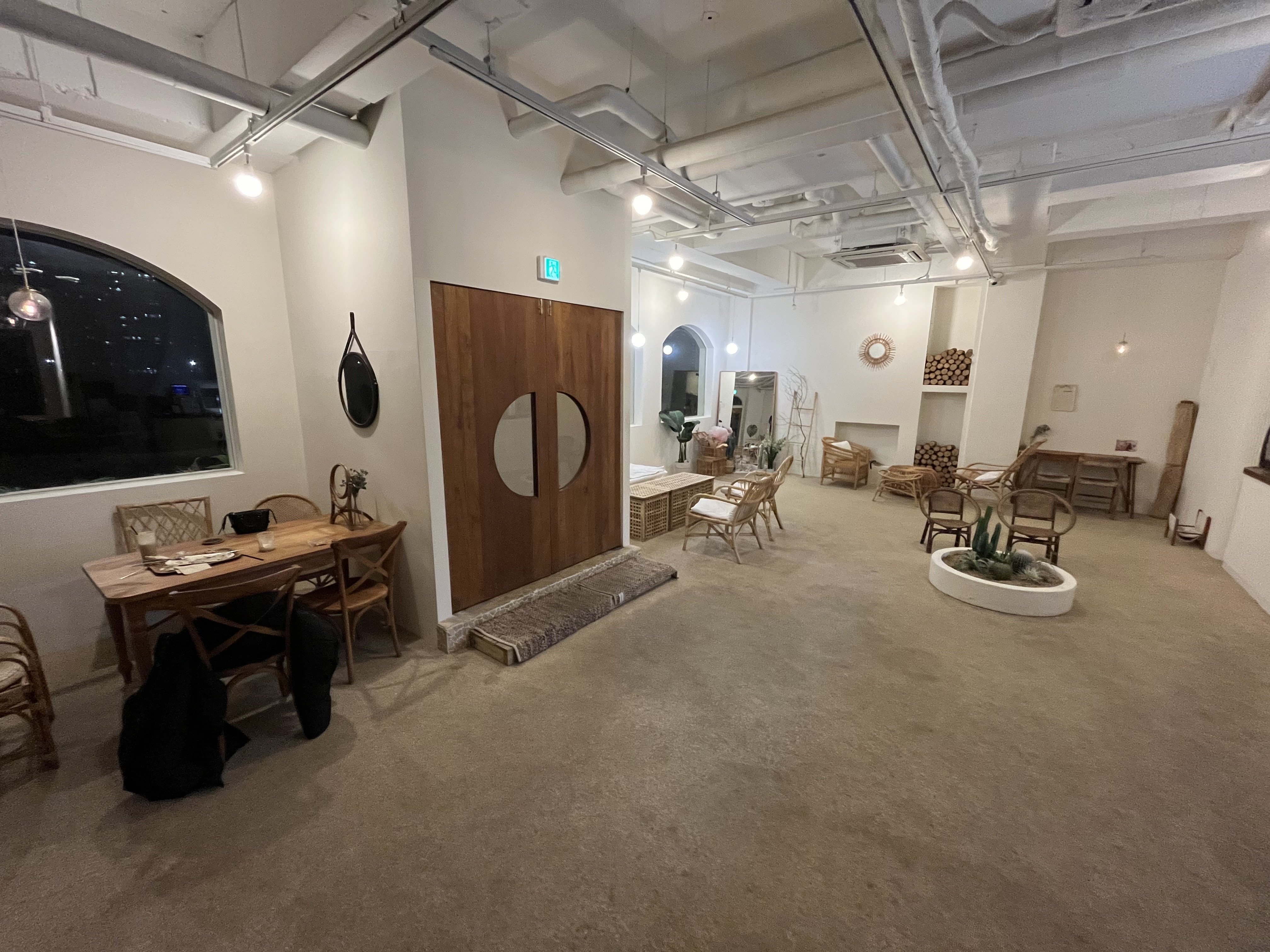 루나블루 내부는 전체적으로 라탄가구를 활용해 휴양지의 느낌을 연출합니다. 좌석 간격은 넓어 쾌적한 분위기를 조성하고 있으며, 픽업대에는 촬영으로 대관하는 모습을 볼 수 있습니다. 각 테이블마다 사진 스팟이 마련되어 있어 손님들은 이곳에서 여러 추억을 담을 수 있습니다.