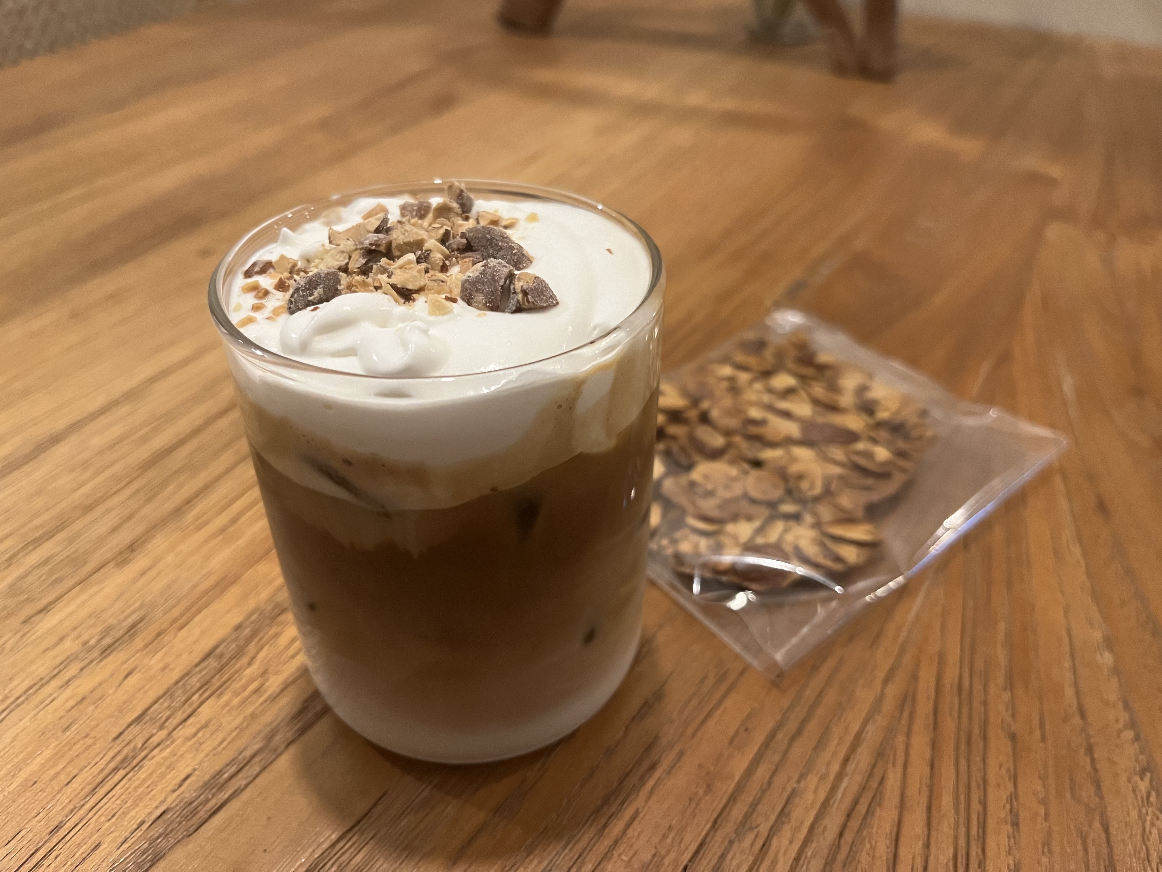- 아이스 바닐라 라떼: 상쾌한 맛과 함께 우드감성의 따뜻한 분위기를 느낄 수 있습니다.