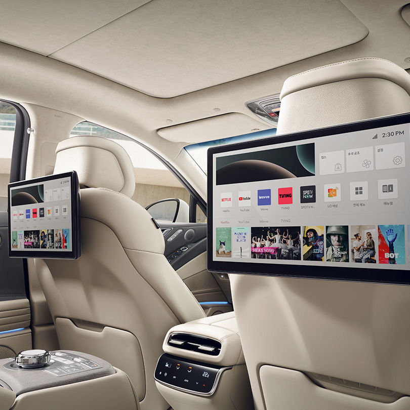 내부 공간 또한 혁신적인 디자인과 기능성으로 가득 차 있습니다. 27인치 와이드 디스플레이는 수평적인 공간을 강조하며, 터치 디스플레이 및 컨트롤러의 업그레이드는 사용자의 편의성을 높였습니다.