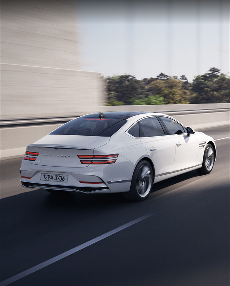 제네시스 G80 페이스 리프트는 최신 모델로써 전면과 후면 디자인에서 혁신을 이루어내었습니다. 큐빅형 램프와 20인치 휠의 조합은 더욱 동적이고 세련된 외관을 제공합니다.