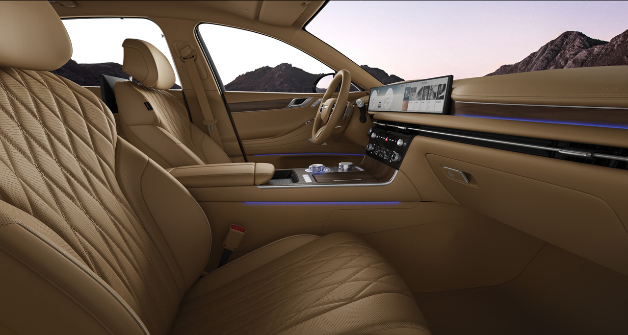 내부 공간 또한 혁신적인 디자인과 기능성으로 가득 차 있습니다. 27인치 와이드 디스플레이는 수평적인 공간을 강조하며, 터치 디스플레이 및 컨트롤러의 업그레이드는 사용자의 편의성을 높였습니다.
