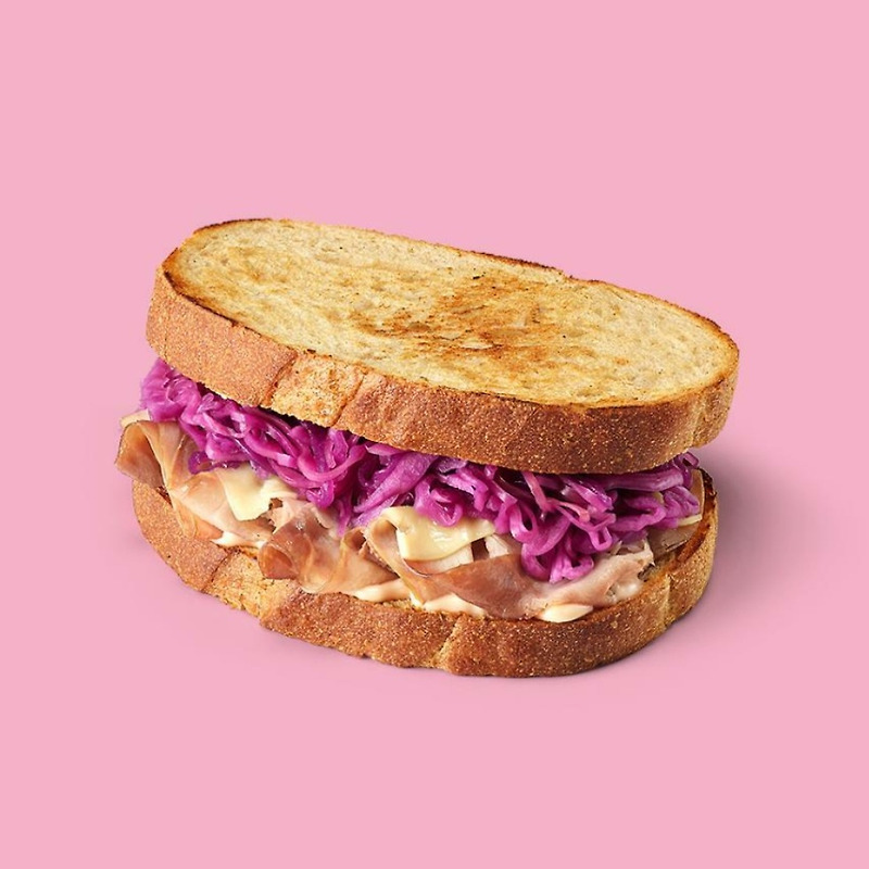 총 343kcal로 당류는 9g, 포화지방 5g, 단백질은 21g으로 구성된 파스트라미 햄 & 치즈 샌드위치는 단백질 섭취에 좋은 선택입니다. 호밀빵에 치즈, 소고기 앞다릿살, 돼지고기가 함유되어 있어, 든든하게 영양을 보충할 수 있습니다. 적양배추의 상큼한 맛은 피클처럼 더해져 더욱 매력적입니다.
