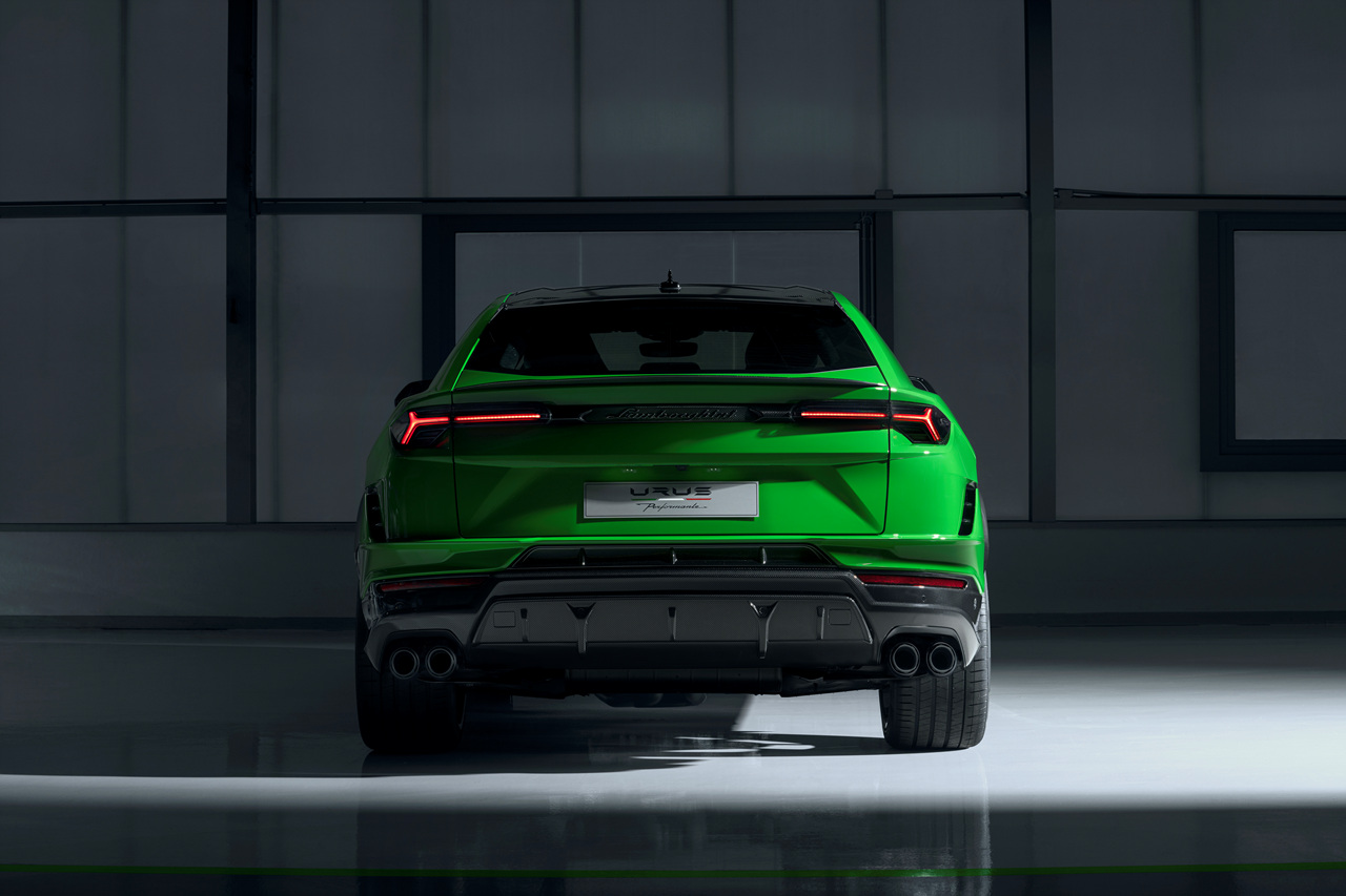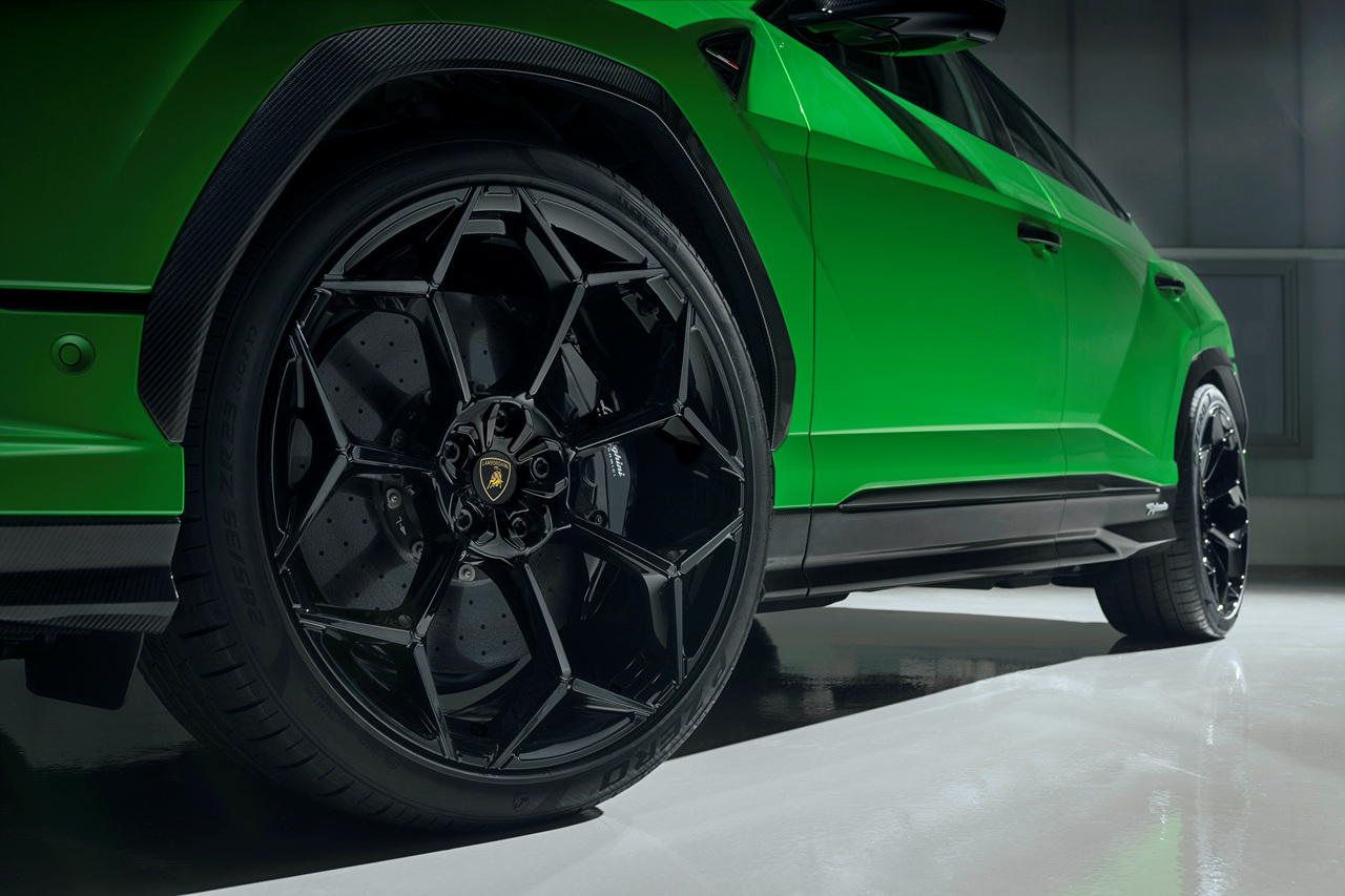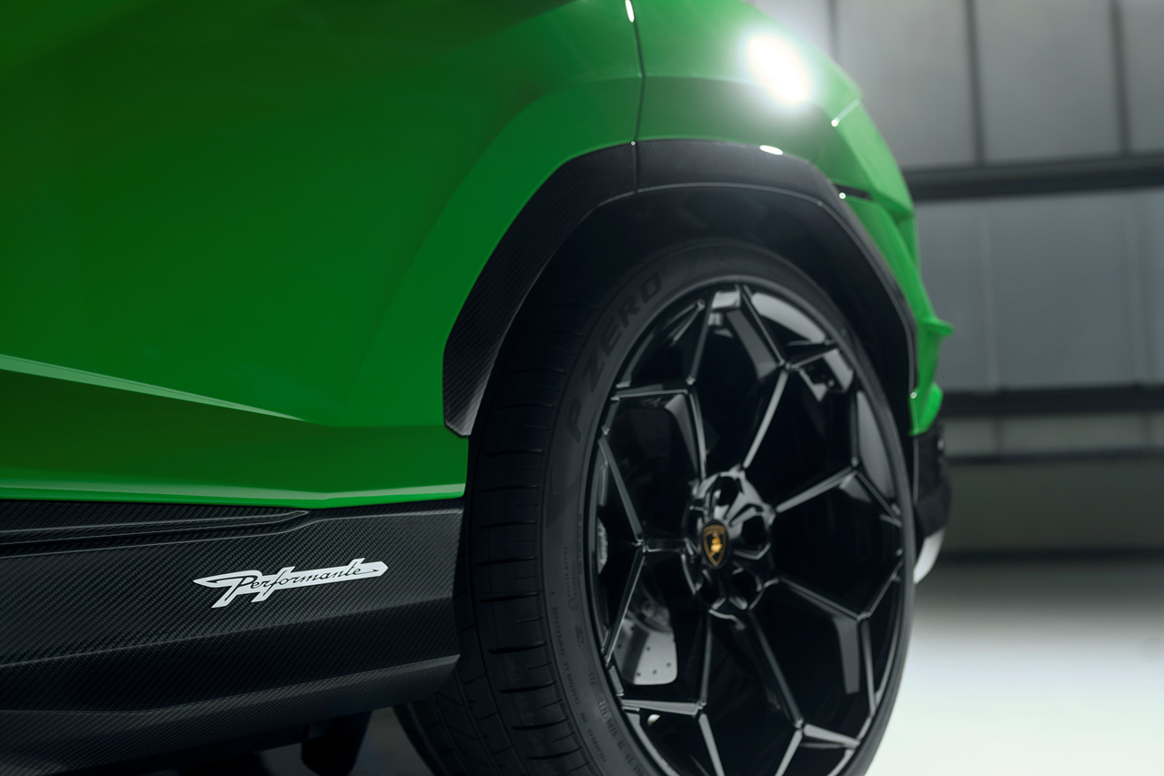 우루스 퍼포만테는 기존 모델에 비해 47kg 가벼워진 바디를 자랑합니다. 이는 차량의 무게를 낮추어 성능 향상에 기여했으며, 탄소섬유로 제작된 보닛과 카본 섬유 구성 요소의 적용으로 외관이 한층 더 공격적으로 변했습니다.