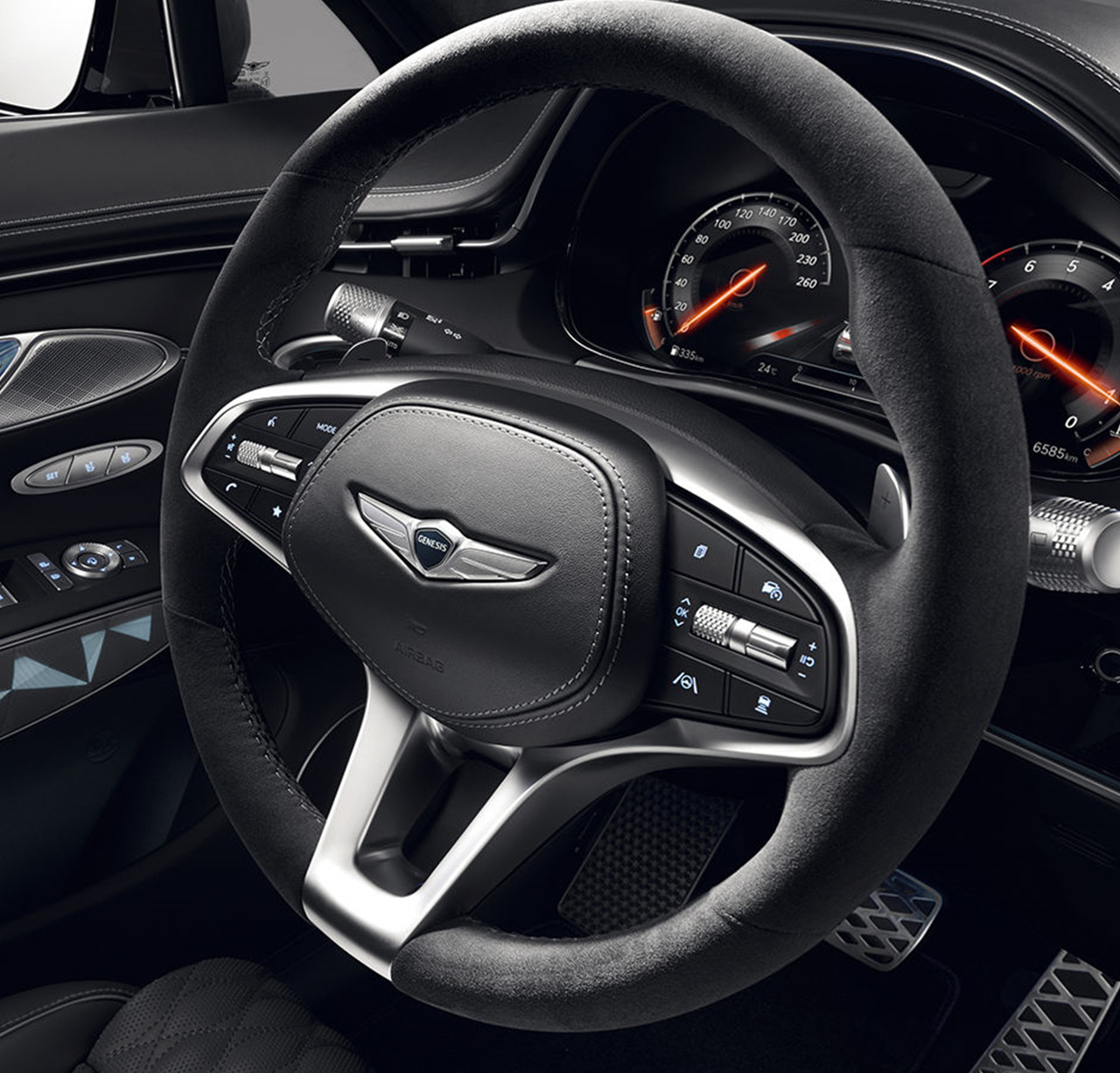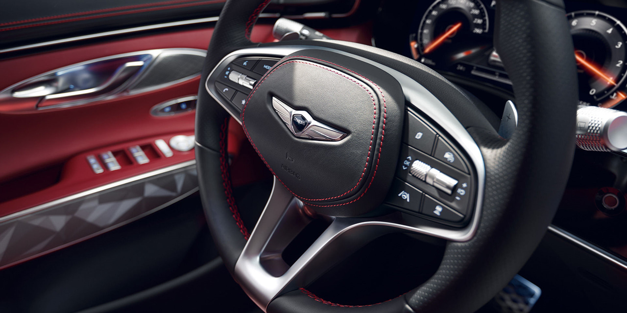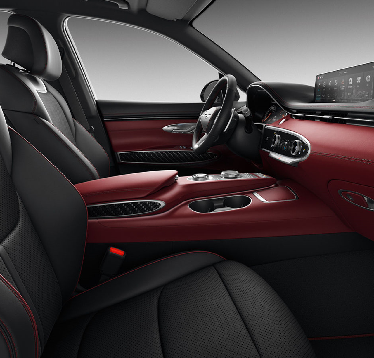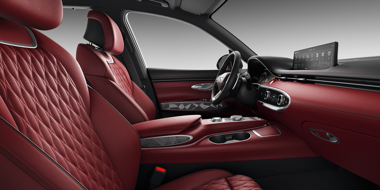GV70의 내부는 럭셔리하면서도 기능적인 디자인으로 구성되어 있다. 스탠다드 모델과 스포츠 모델에 따라 다른 실내 색상을 선택할 수 있으며, 고급 재질과 세련된 터치가 돋보인다. 스포츠 어드밴스드 패키지를 선택하면 새로운 스타일의 21인치 휠이 추가되어 더욱 독특한 외관을 만들어낸다.