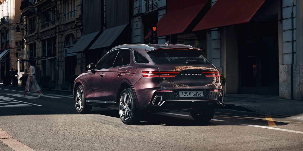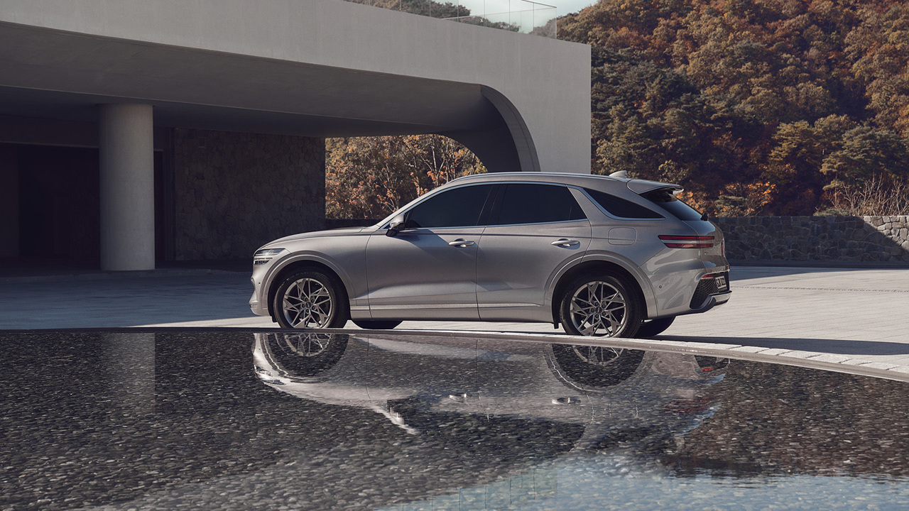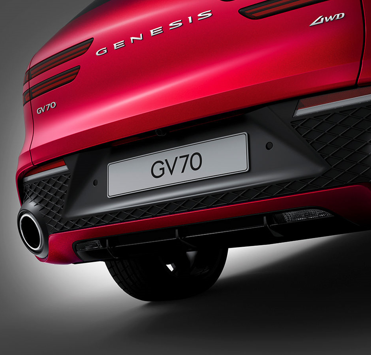 GV70의 외부 디자인은 독특하면서도 세련된 특징을 지니고 있다. 제네시스는 크고 다이내믹한 다이아몬드 그릴과 고급스러운 LED 헤드라이트로 차량의 정체성을 강조하고 있다. 또한, 다양한 외부 색상과 휠 스타일을 통해 소비자에게 선택의 폭을 제공한다. 글로시 라인과 매트 라인으로 나뉘는 외부 색상은 GV70의 고객이 선호에 따라 선택할 수 있다.