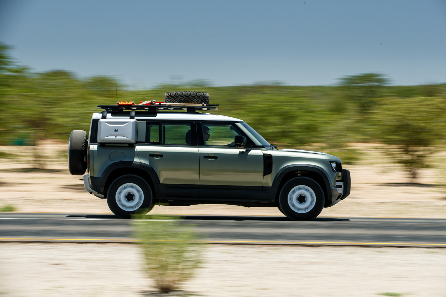측면의 플로팅 필러, 강건한 숄더, 리어 장착형 스페어 휠은 디펜더 110의 튼튼한 동체를 강조하며, 측면 개방 테일게이트는 차량의 바디 라인을 상징적으로 강조합니다. 이러한 디자인 특징들은 랜드로버의 레거시를 계승하면서도 현대적인 감각을 더합니다. 이 모든 특징들이 결합하여, 디펜더 110은 어떤 지형에서도 뛰어난 내구성과 안정성을 보장합니다.