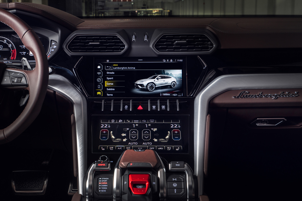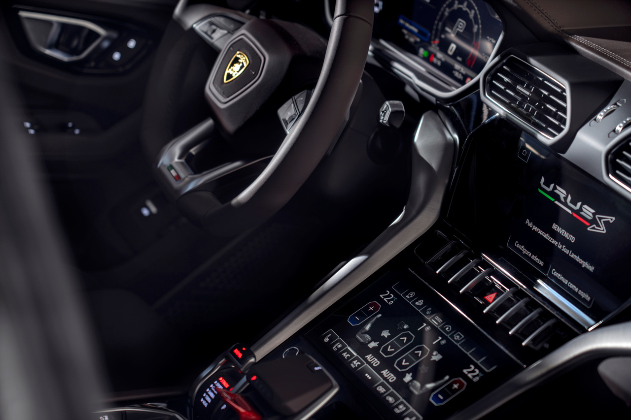 2023 람보르기니 우루스 S의 내부는 고급 소재와 편의사양으로 가득 차 있습니다. 알칸타라 소재의 대시보드와 도어 트림, 나파 가죽 시트는 럭셔리한 느낌을 더했으며, 12.3인치 디지털 계기판과 10.1인치 인포테인먼트 시스템은 최신 테크놀로지를 즐길 수 있는 편의를 제공합니다.