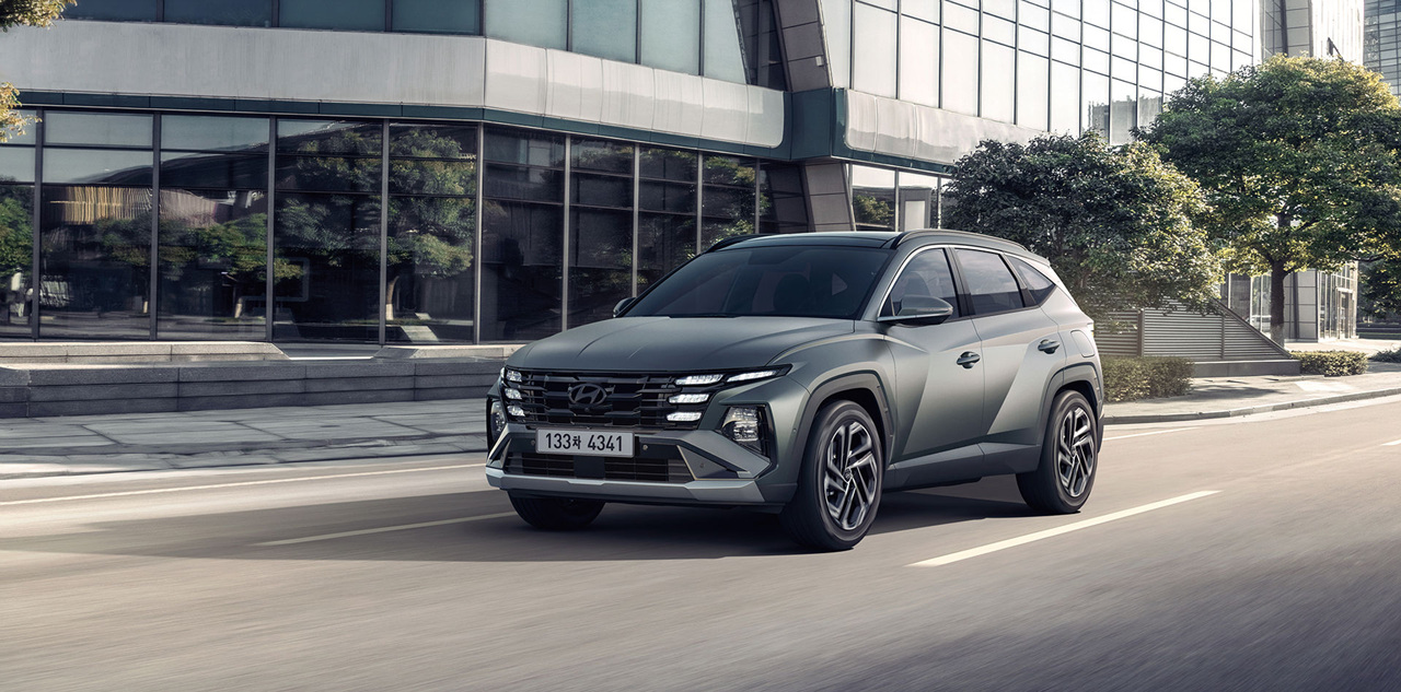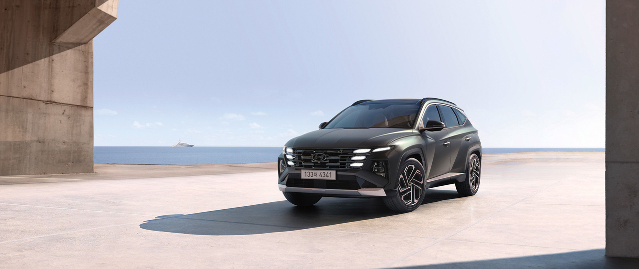 2024 투싼은 러기드한 디자인과 스포티한 캐릭터 라인을 결합하여 다이내믹한 스타일을 강조하고 있습니다. Full LED 헤드램프와 히든 라이팅 주간주행등은 주행 시 시야를 확보하는 데 도움을 주고 있습니다.