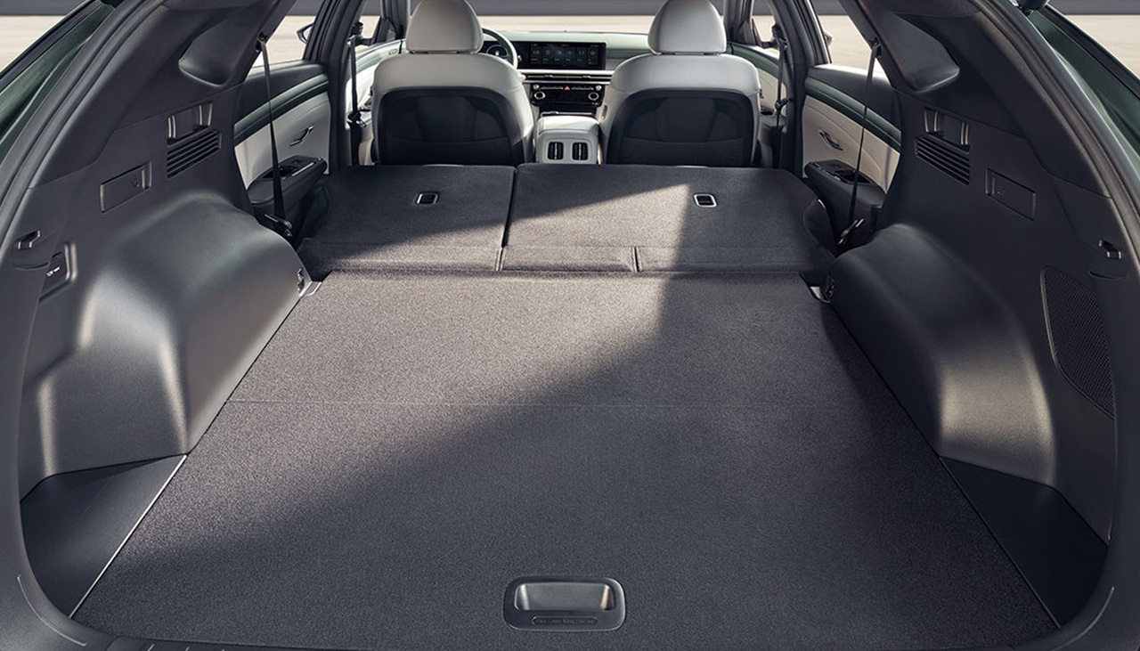 투싼 하이브리드의 내장 디자인은 와이드한 수평형 레이아웃으로 현대적이고 부드러운 공간을 제공합니다. 12.3인치 디지털 클러스터와 인포테인먼트 시스템은 고급스러운 느낌을 강조하며 정보를 선명하게 전달합니다.