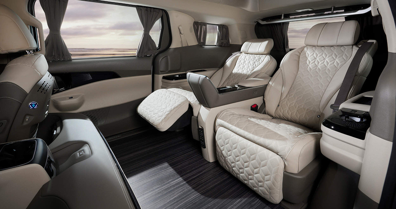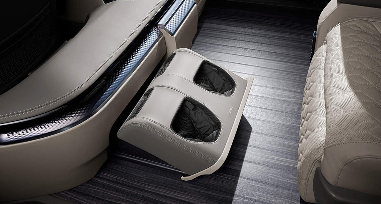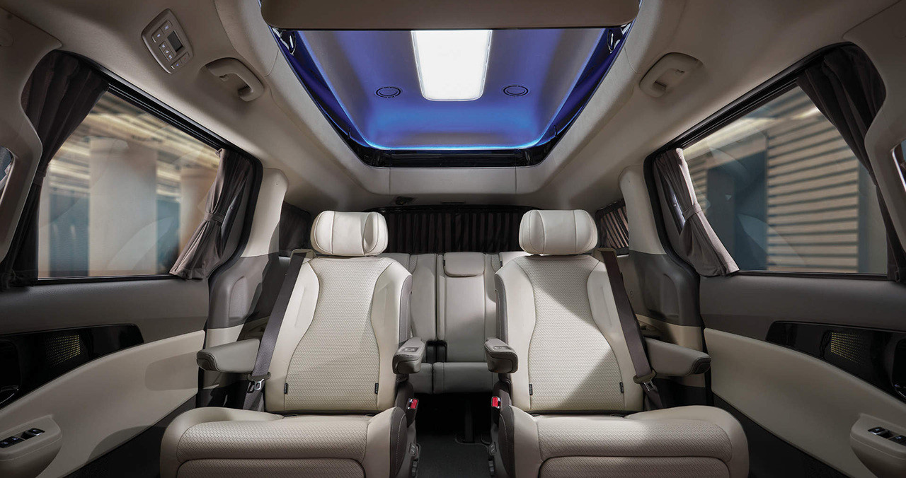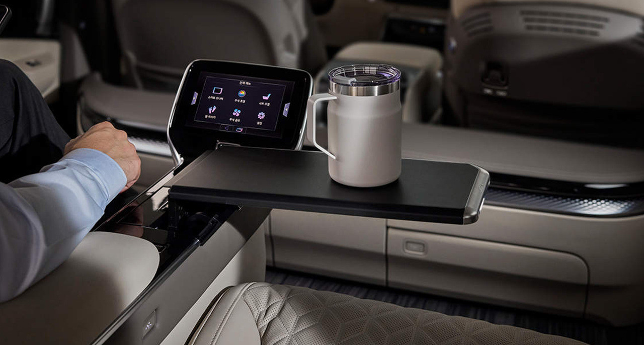 2열의 레그룸이 넓고, 3열 좌석을 접으면 더 넓은 공간을 만들어 차박이나 장거리 여행 시에도 편안한 휴식을 취할 수 있습니다. 내부에서는 스마트 모니터, 냉/온 컵홀더, 발 마사지 시스템 등 다양한 편의 시설이 제공되어 있습니다.