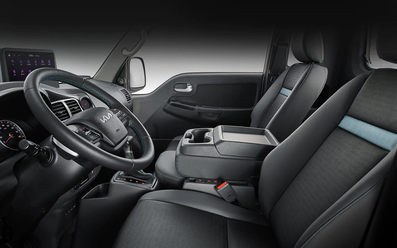 봉고3 EV는 전기차로서 독특한 디자인과 특징을 갖고 있습니다. 외부 충격을 방어하는 전용 범퍼와 EV 전용 도어 데칼은 차량의 독특한 정체성을 부각시키며 스타일을 더합니다. 스티어링 휠과 시트는 고급 소재로 제작되어 운전자와 승객에게 편안한 탑승감을 제공합니다.