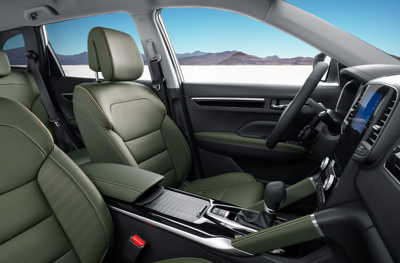QM6의 실내는 새로운 올리브 그린 나파 가죽 시트와 블랙 우드 데코가 조화를 이루며, 고급스러움을 극대화합니다. 시트는 옐로우 스티치로 포인트를 주어 다채로운 감성을 전달하고, 슬라이딩 및 레클라이닝 기능이 있는 2열 시트는 다양한 공간 활용을 가능케 합니다. 573리터의 대용량 트렁크와 최대 1,804리터의 적재 공간은 여행과 캠핑을 위한 완벽한 선택입니다.