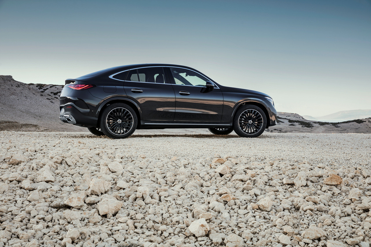 2024 GLC 300 4MATIC 쿠페는 중형급 크기의 럭셔리 SUV 쿠페로, 전장 4,720mm, 전폭 1,920mm, 전고 1,600mm, 휠베이스 2,890mm의 제원을 자랑합니다. 비율이 더 다이내믹해진 덕분에 공기저항 계수는 이전 세대 대비 0.03cd 개선된 0.27cd로 더욱 향상되었습니다.