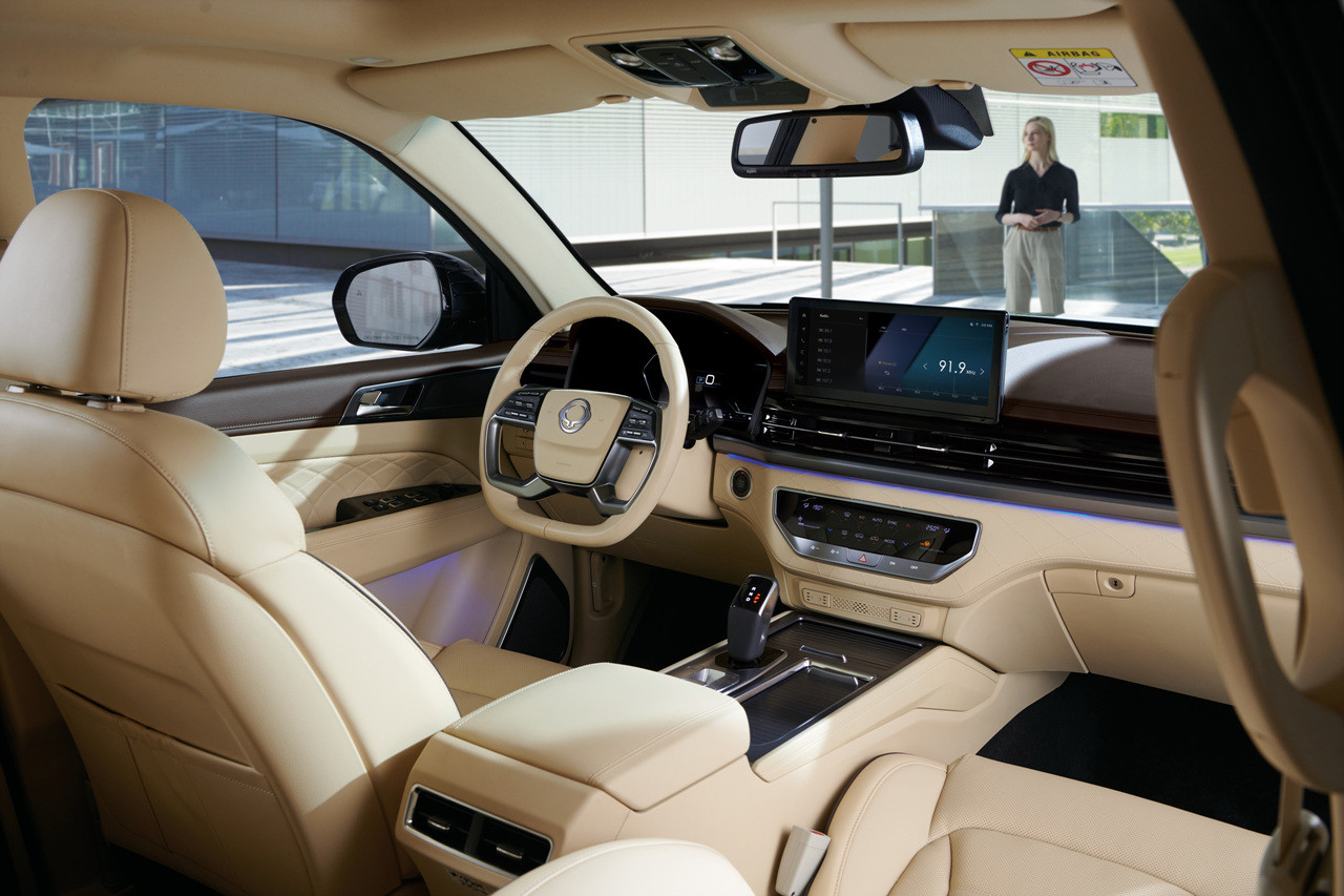 렉스턴 스포츠 칸은 5도어 SUV로서 5명의 승객을 수용할 수 있는 넓은 실내를 제공합니다. 헤드룸과 레그룸이 풍부하며, 다목적으로 활용 가능하여 가족 여행이나 친구와의 완벽한 동승을 가능케 합니다.